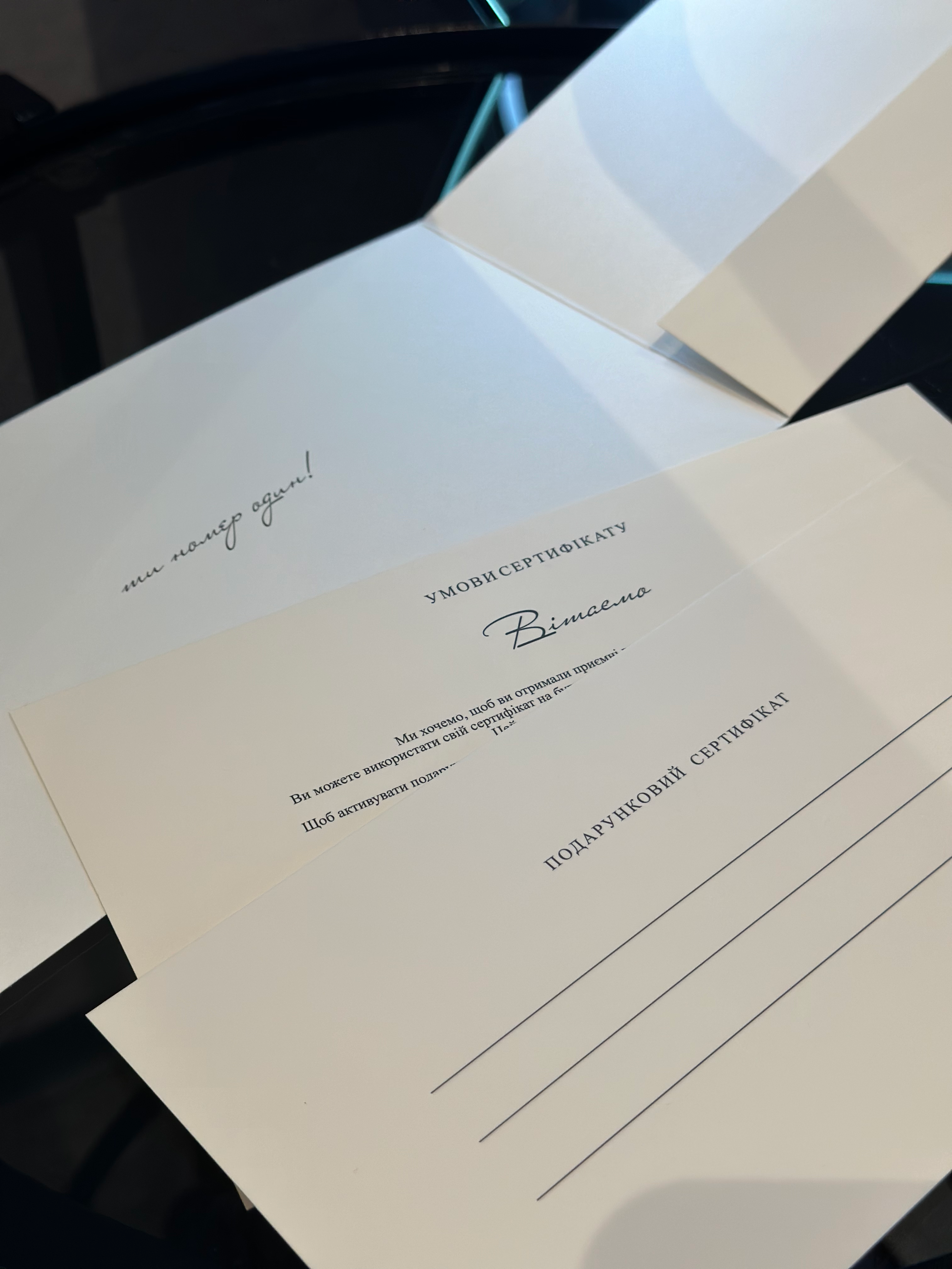 Для замовлення подарункового сертифікату НОМЕР 1 оберіть суму еквіваленту.
