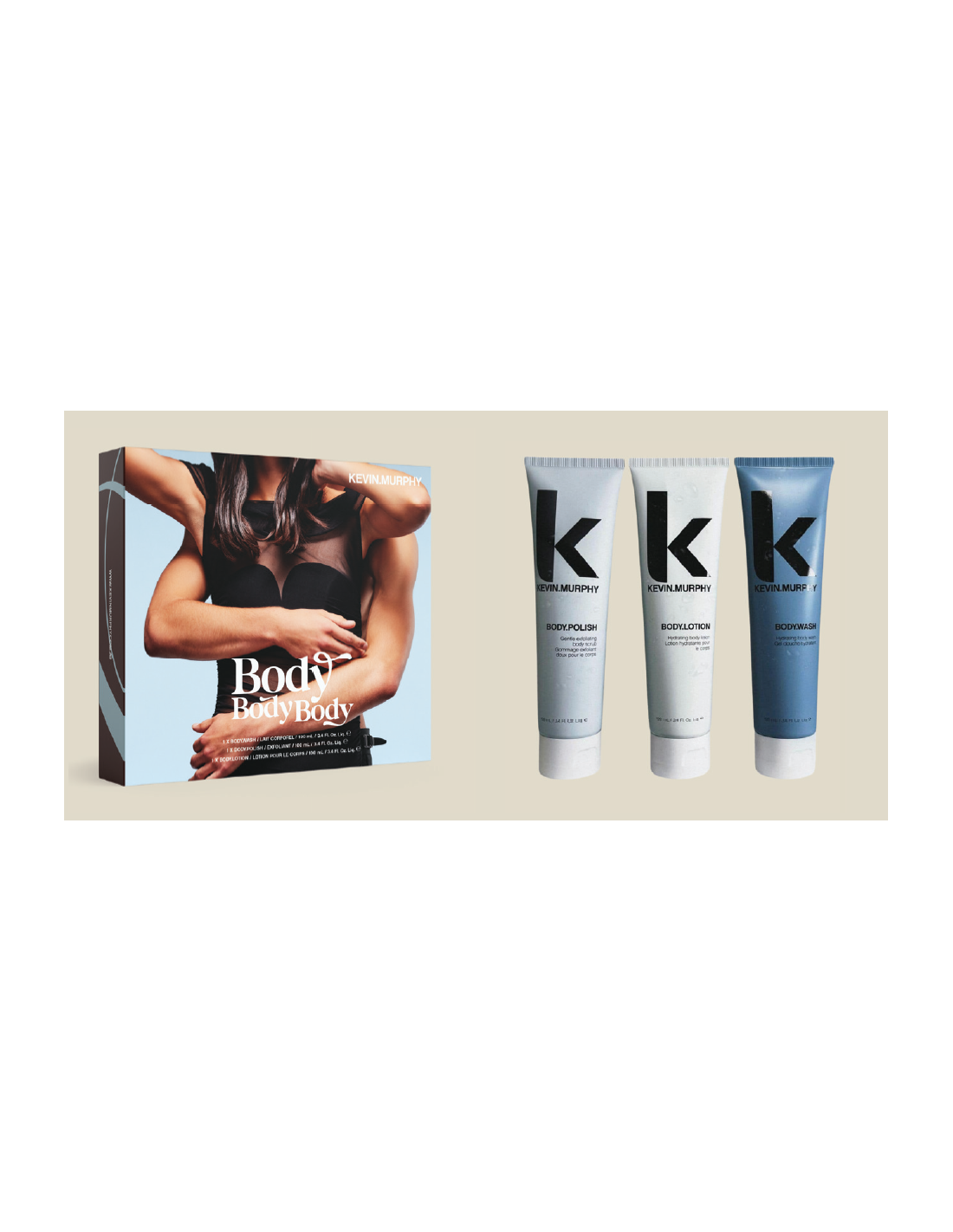 Набір Body.Body.Body від KEVIN MURPHY включає три продукти, спеціально розроблені для догляду за тілом. Вони надають шкірі м’якість, еластичність і живлення, підвищуючи її тонус і сяйво.