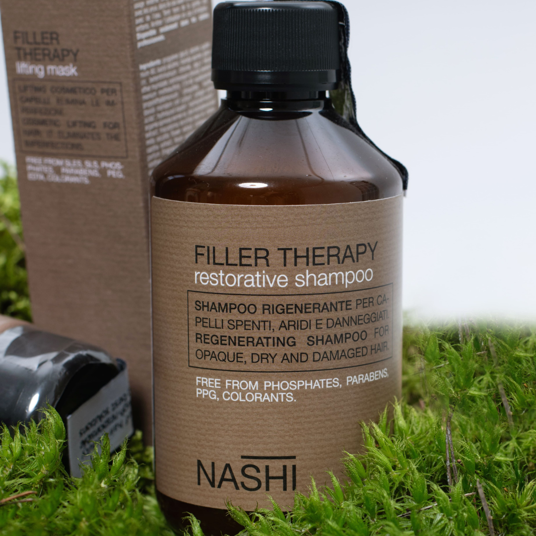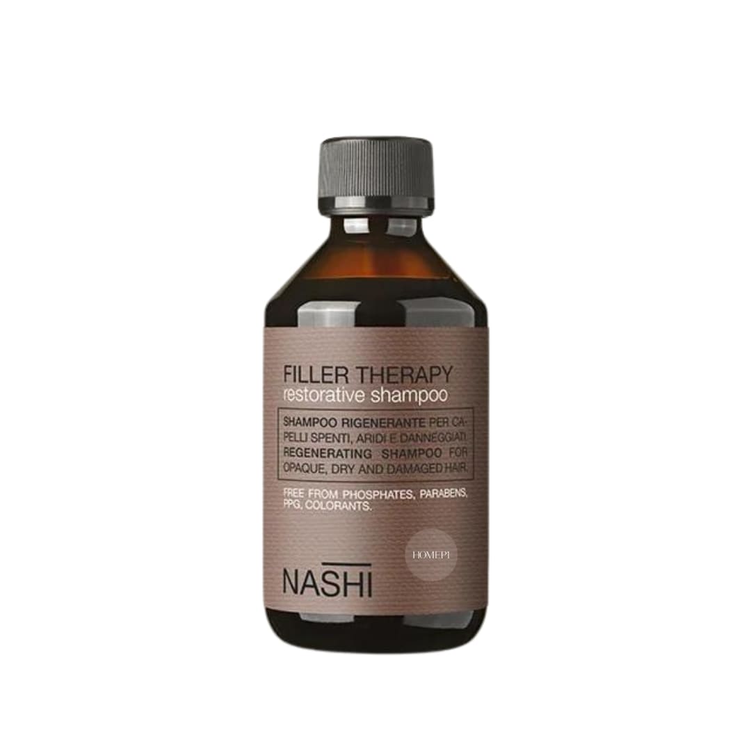 Тонізуючий шампунь від італійського бренду Nashi Argan – це професійний дбайливий засіб, сумісний з усіма типами шкіри та волосся, який підходить для регулярного використання. Filler Therapy чудово очищає локони від будь-яких забруднень: скупчення поту, пилу, залишків стайлінгу, підвищуючи їхні захисні властивості, відновлюючи пошкоджені ділянки. До того ж, Restorative Shampoo позбавляє завитки від сухості, ламкості, перешкоджає посіченості кінчиків і ослаблення коренів, мінімізуючи ризик випадіння волосся.