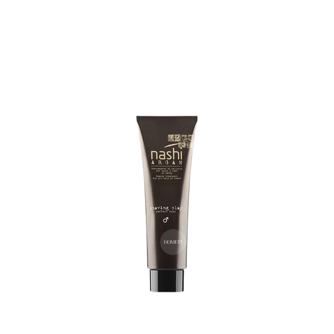 Глина для гоління від Nashi Argan — це зелена формула на основі вулканічної глини і комплексу дорогоцінних олій: арганії, баобаба, чіа і чорного кмину.
